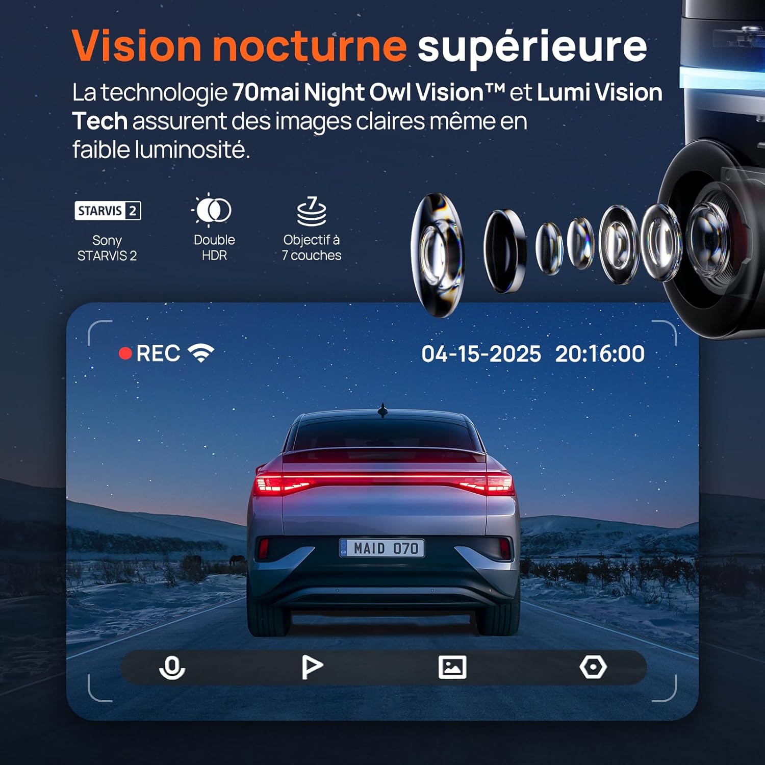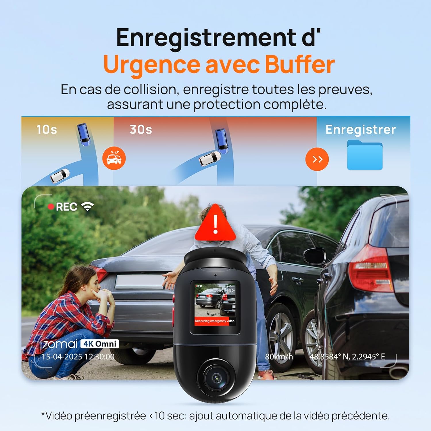 70mai Omni, 4K + 1080P Dash Cam 360° Rotation Car Dashcam, Motion Detection, AI Motion Detection, Day and Night Recorder, GPS, 24H Parking Mode, App Control, Max 512GB