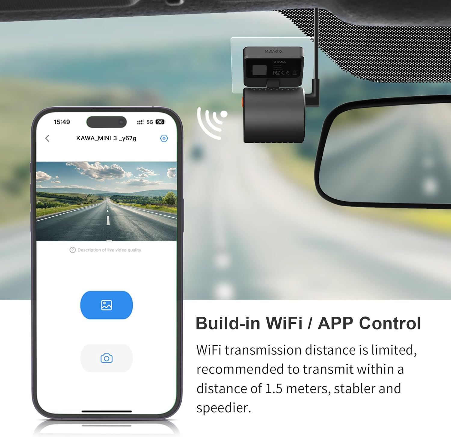 The KAWA MINI 3 dashcam offers discreet and convenient vehicle monitoring thanks to its compact and transparent design.